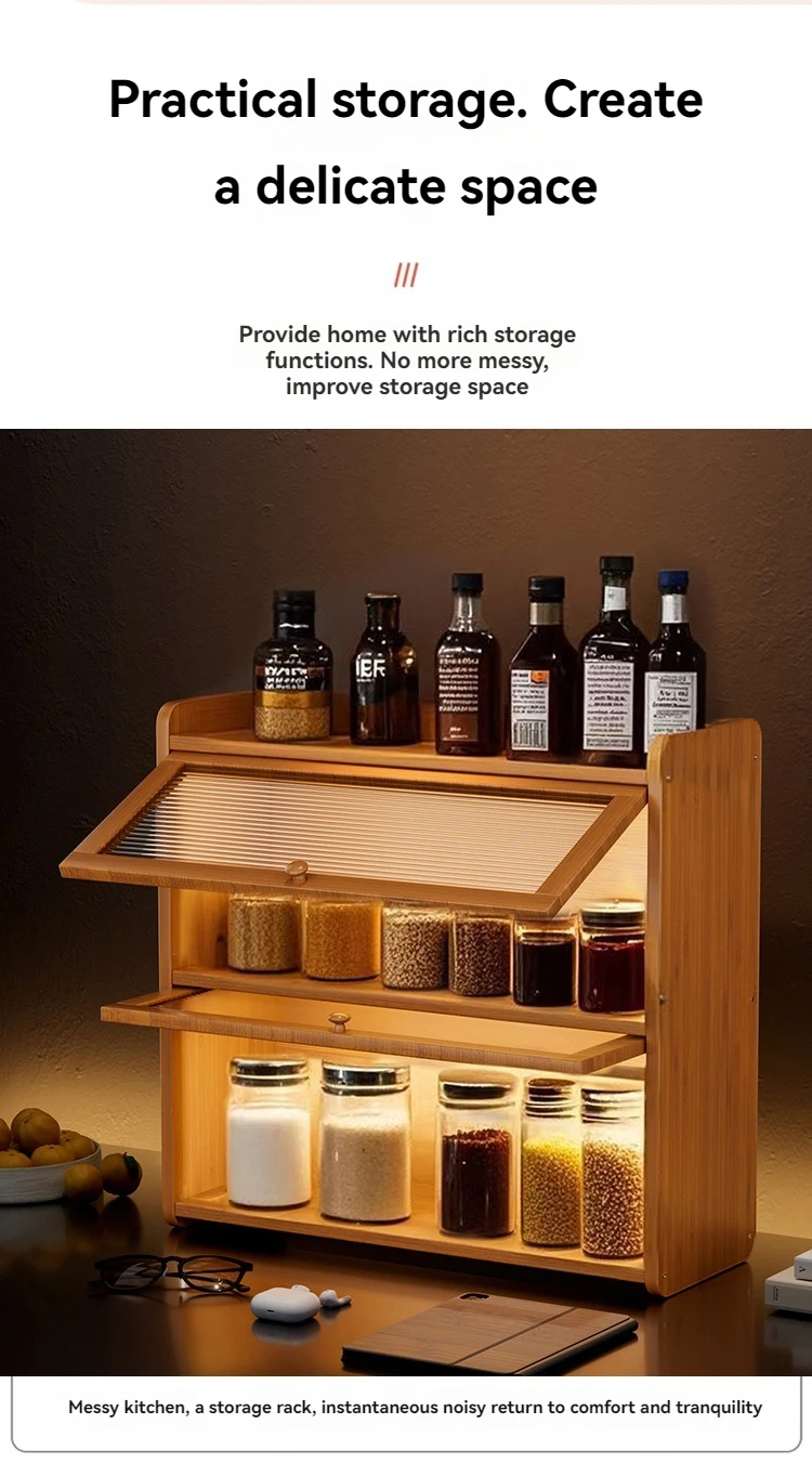 countertop seasoning rack storage shelf, product sorting rack, layered multifunctional storage cabinet.